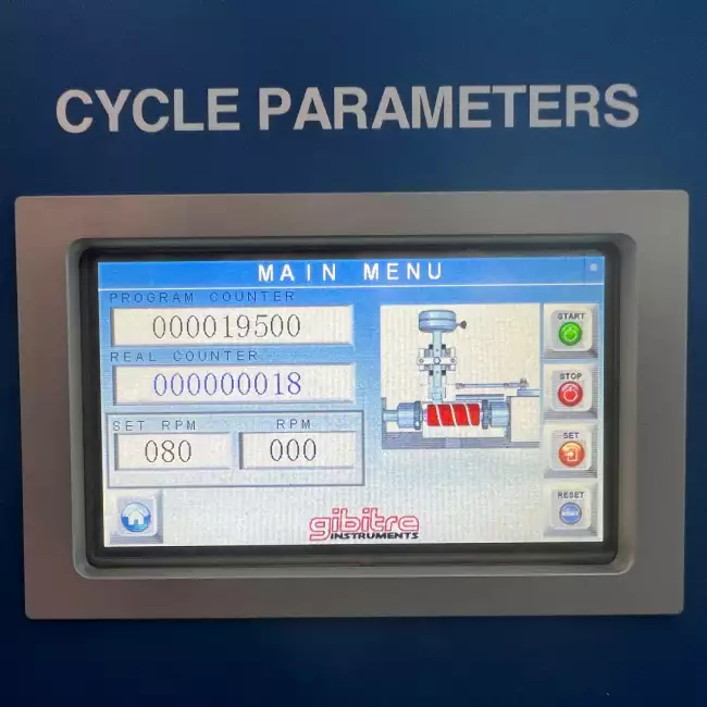 Can be set up to 1,000,000 cycles. Setting via touch-screen control display |