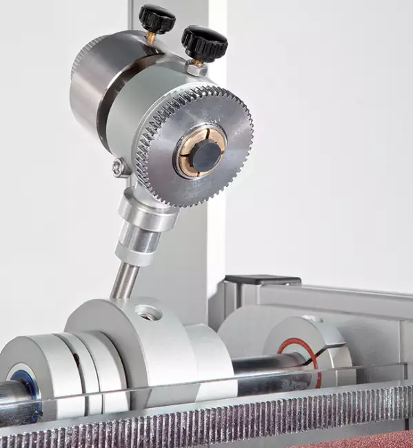After the test, volume change measurement is performed with a millesimal scale (not included). With the optional Gibitre DensityCheck, automatic calculation of relative volume loss and abrasion resistance per ISO 4649 and ASTM D5963