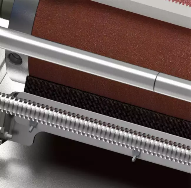 Drum release  Mechanical release of the drum for easy emery cloth replacement and instrument cleaning  Motor Reducer  The electronic motor controller installed ensures precise control of rotation speed