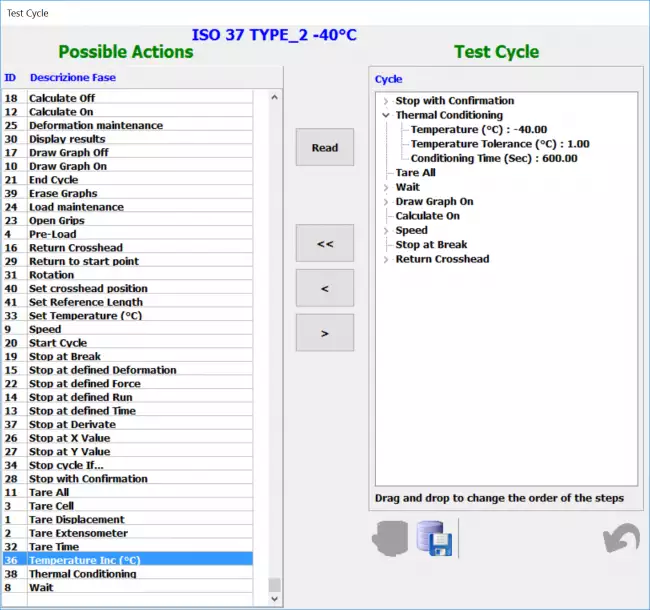 In this way it is possible to prepare test cycles that combine the temperature regulation and the execution of the mechanical stress of the specimen when the required conditions have been reached.