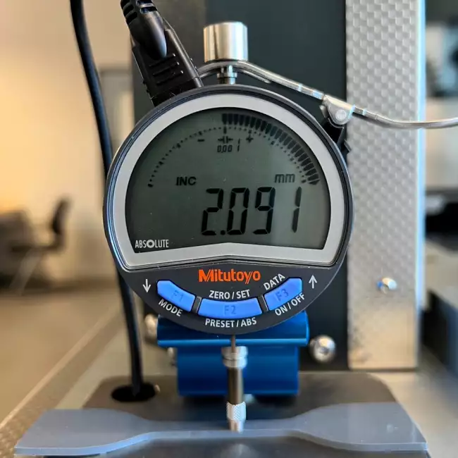 Performing tests on specimens requires the insertion of the thickness or section measurement of the individual specimen for the correct execution of the calculations.