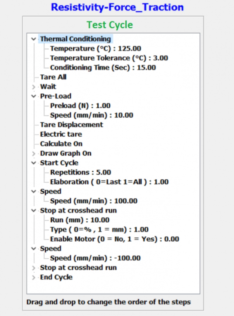 The TensorCheck software allows you to prepare test cycles that include the sequence of operations that the instrument must perform to apply the dynamic cycle intended for the test.