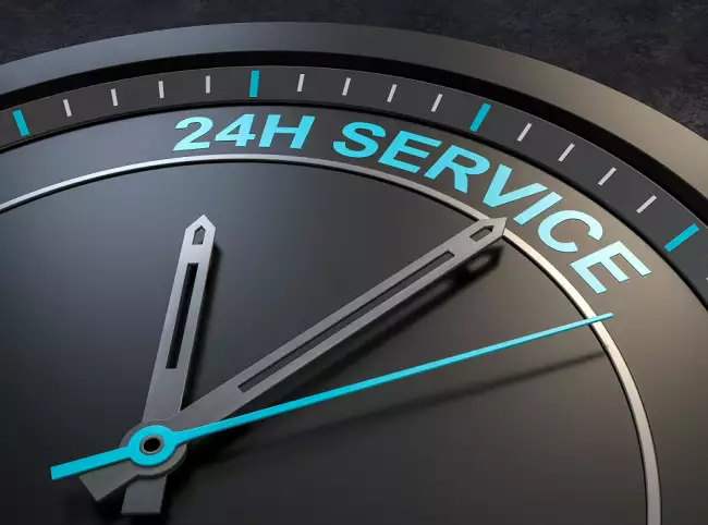 Technical support services. Gibitre pays great attention to minimizing technical intervention times. Image with clock.