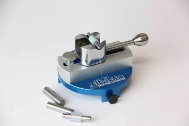 The centering device allows for quick hardness testing on O-rings and technical articles with a chord length between 0.6 and 10 mm and an inner diameter of up to 200 mm. To conduct the test, the part is positioned between the two adjustable rods. The adjustment knob enables precise setting of the distance between the rods according to the chord size of the O-ring or workpiece.