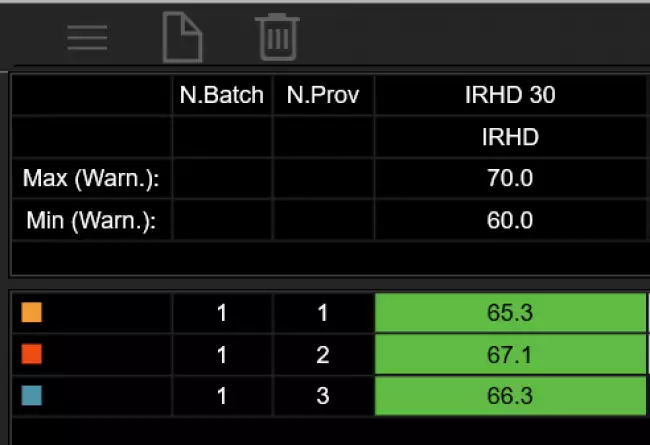 The comparison between the results and the tolerance limits is carried out automatically at the end of each test: the test results are colored (Green, Yellow or Red) based on the outcome of the comparison with the limits.