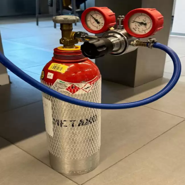 The instrument must be connected to a Methane Cylinder. A pressure reducer (not included) is required to supply the instrument with a pressure of 1 bar. The connection to the gas network must be carried out by a qualified technician. |