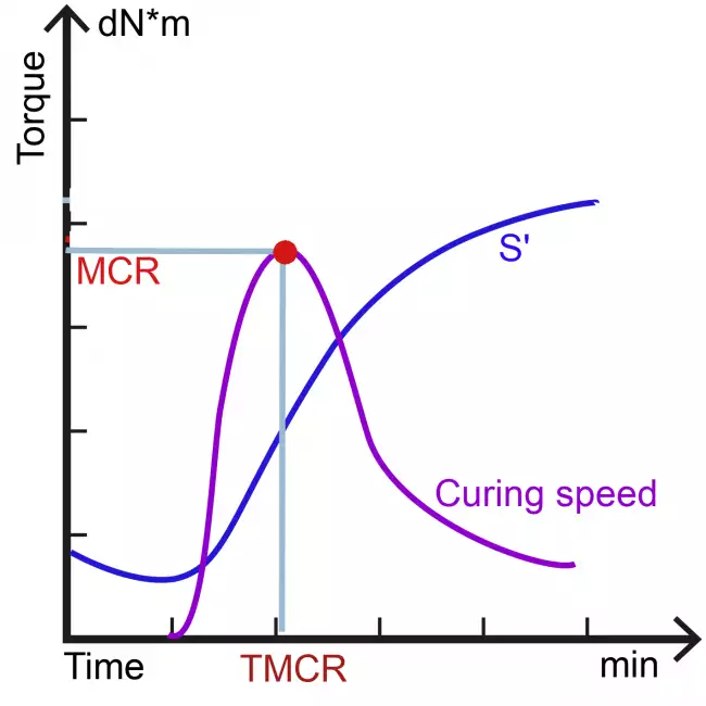 MCR: Maximum Curing Rate This calculation returns the maximum torque increase value in the time unit measured during the test (corresponds to flexure point of the increasing line of the elastic curve S')
