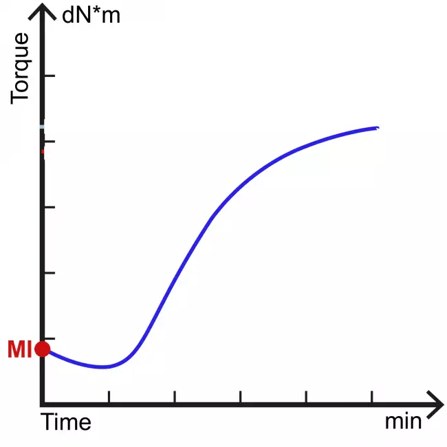 Gibitre software. Formulas for calculating results. Rheo-Check software. Graphical explanation of MI (Initial Torque) value calculation.