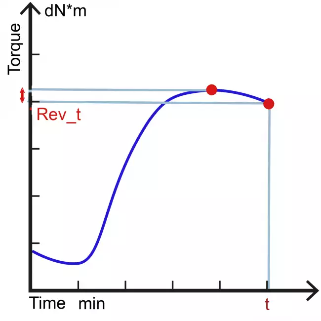 tR_x: Time for Reversion of x dN*m This calculation returns the time from test start, when a torque reduction of x dN*m from MH is detected.