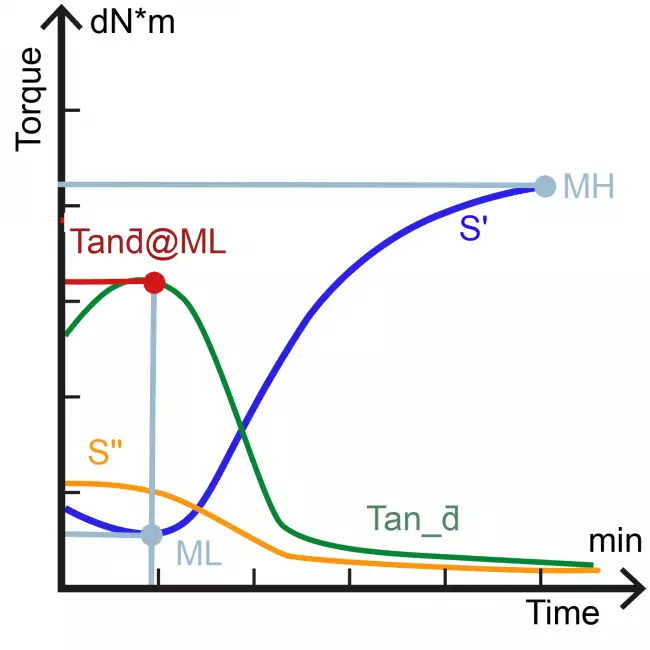 t'_x: time to set percentage of curing The time to a percentage of full cure from minimum torque t’_x is the time taken for the torque to reach: ML + x*(MH-ML)/100