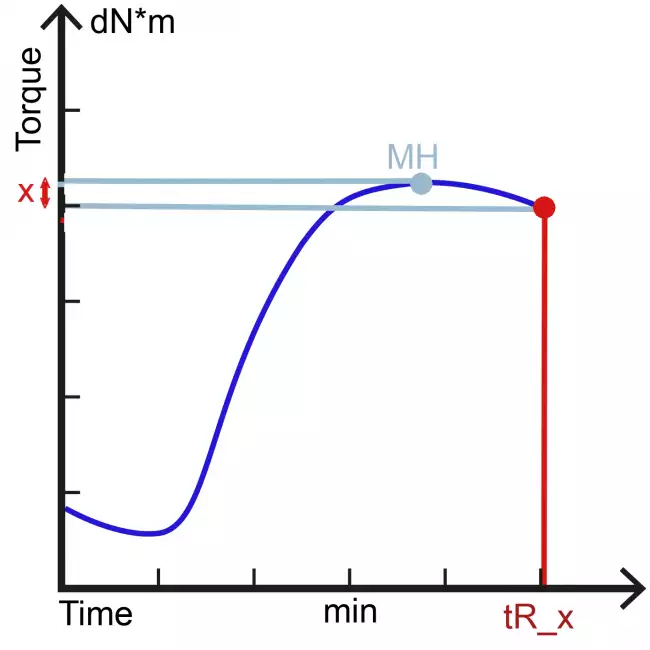 M_x: torque at set percentage of curing Torque at a percentage of full cure from minimum torque M_x is the torque value at: ML + x*(MH-ML)/100