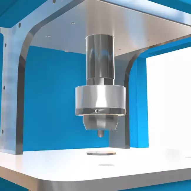 The cutting mechanism adopts a double-action piston to press the compound to the required thickness and subsequently activate the cutting die to obtain specimens with the required volume even with compounds of high hardness.