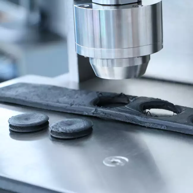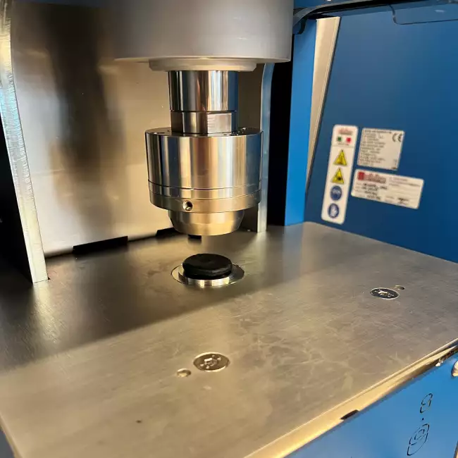 The cutting mechanism adopts a double-action piston to press the compound to the required thickness and subsequently activate the cutting die to obtain specimens with the required volume even with compounds of high hardness.