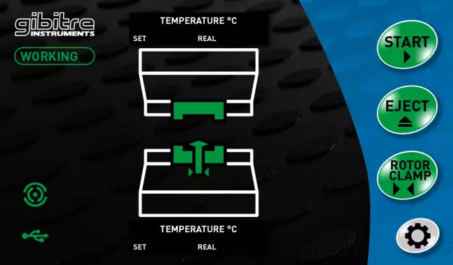 Graphic representation  Elastic curve (S'), Viscose curve (S"), Complex curve (S*)Tan-Delta curve, Curing speed, Upper and Lower test chamber temperatures  Results storage  The test result sand the curves are stored in the SQL Gibitre database which is installed in combination with the software  Units  Torque: dNm or lbf.in.