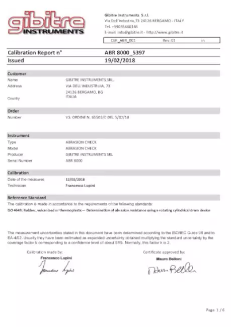 • Calibration of the abrasiveness of the emery paper with Certified rubber samples (3 tests)