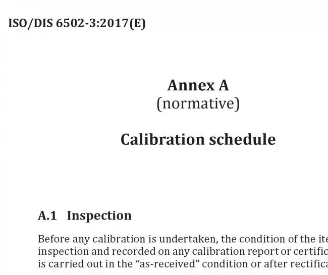 The calibration is performed with reference to the requirements of ISO 2921 and ISO 812 standards.
