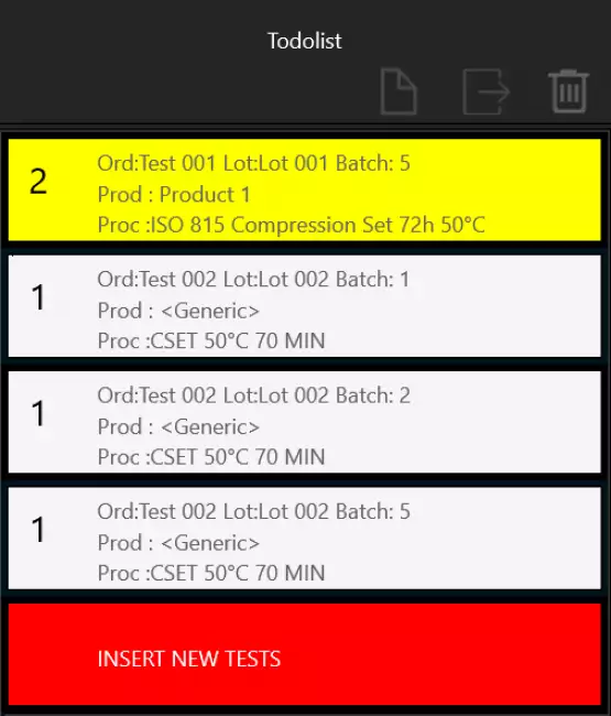 Test insertion in one step The software also allows you to simplify the insertion of the test by inserting the initial thickness of the specimen and the final one (after aging in the stove) on a single page.