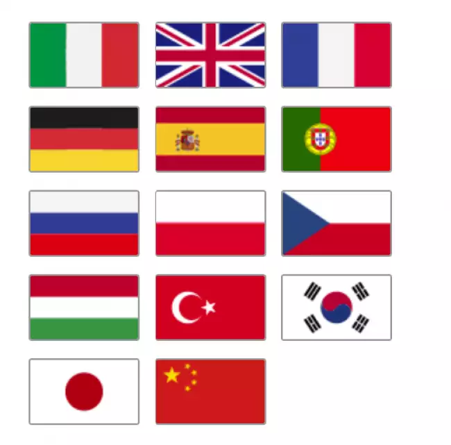 The languages available at the moment are: Italian, English, French, German, Spanish, Portuguese, Russian, Polish, Czech, Turkish, Japanese, Chinese.