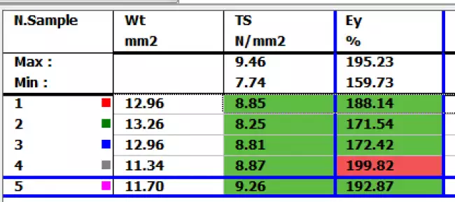 The comparison between the results and the tolerance limits is carried out automatically at the end of each test: the test results are colored (Green, Yellow or Red) based on the outcome of the comparison with the limits.