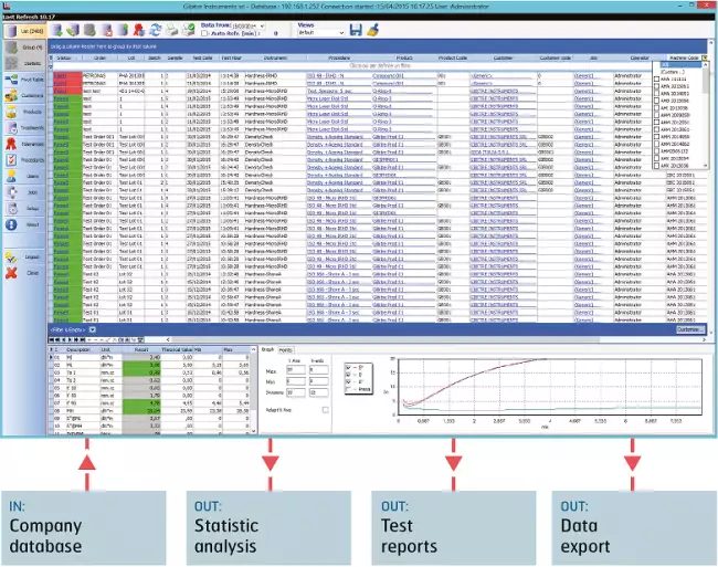 The results and test curves of all the tests carried out are saved in the Gibitre SQL database and are available through the Datagest program.