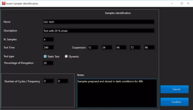 The software allows to associate to each group of specimens a sequence of images that describe their status during the test time.