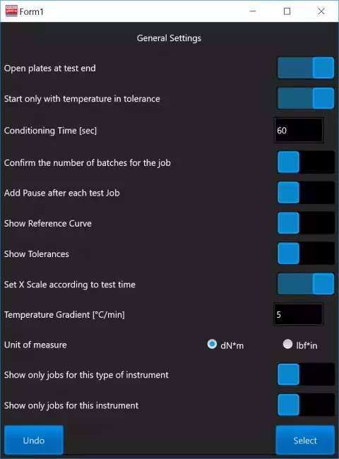 • All the curves are saved in the database together with the test results.