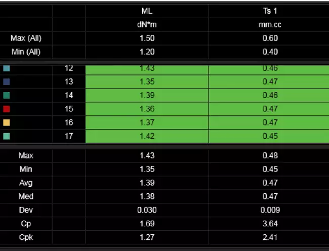 The Datagest program allows you to define specific tolerance limits for each Product, Customer, Test Procedure and Aging Treatment.