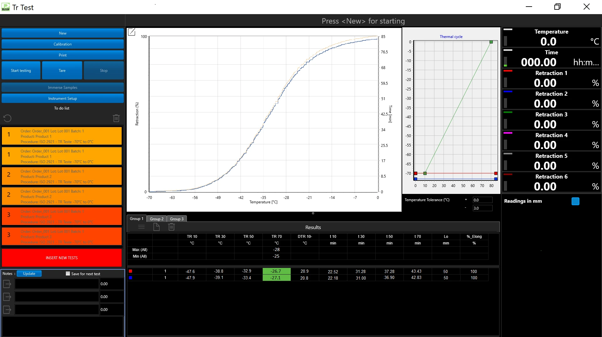 The program Gibitre-TR-test, compatible with Windows 10 and 11, controls the complete test sequence and permits to save test results and retraction curves in the standard SQL gibitre database
