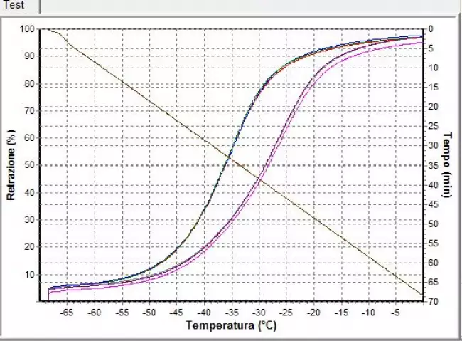 Test Curves • The curves relating to the tests carried out are shown in different colors to associate them immediately with the relative results.