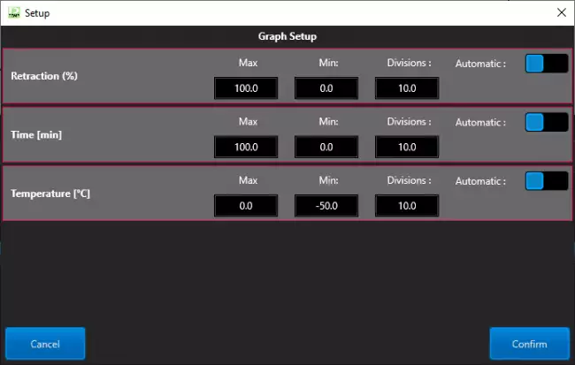 • The graphical functions integrated in the programs (scale settings, the number of divisions and zoom) allow you to analyze the curves in detail.