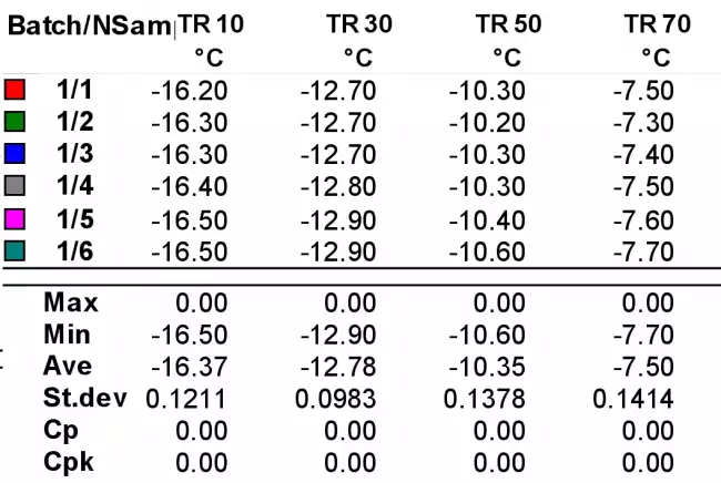 The Datagest program allows you to define specific tolerance limits for each Product, Customer, Test Procedure and Aging Treatment.
