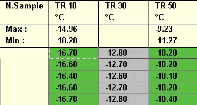 The comparison between the results and the tolerance limits is carried out automatically at the end of each test: the test results are colored (Green, Yellow or Red) based on the outcome of the comparison with the limits.